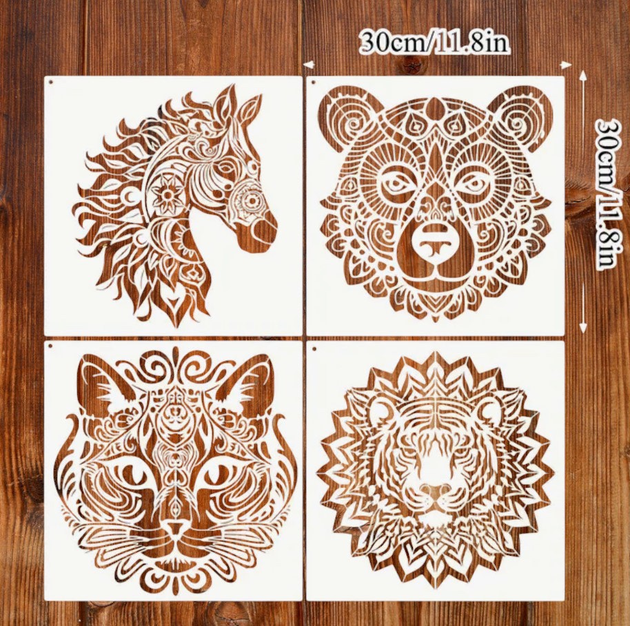 Šis 30×30 cm daugkartinių trafaretų rinkinys sukurtas tiems, kurie nori perkelti taškavimo techniką į didesnį formatą, išgauti sudėtingus motyvus ir išlaikyti tobulą simetriją be daug matavimo. Trafaretų rinkinyje rasite: liūtą, arklį, mešką, pelėdą, katę, tigrą, šunį, vilką ir vėžlį – tai stiprūs simboliai, apjungti ornamentų ir mandalų detalių.