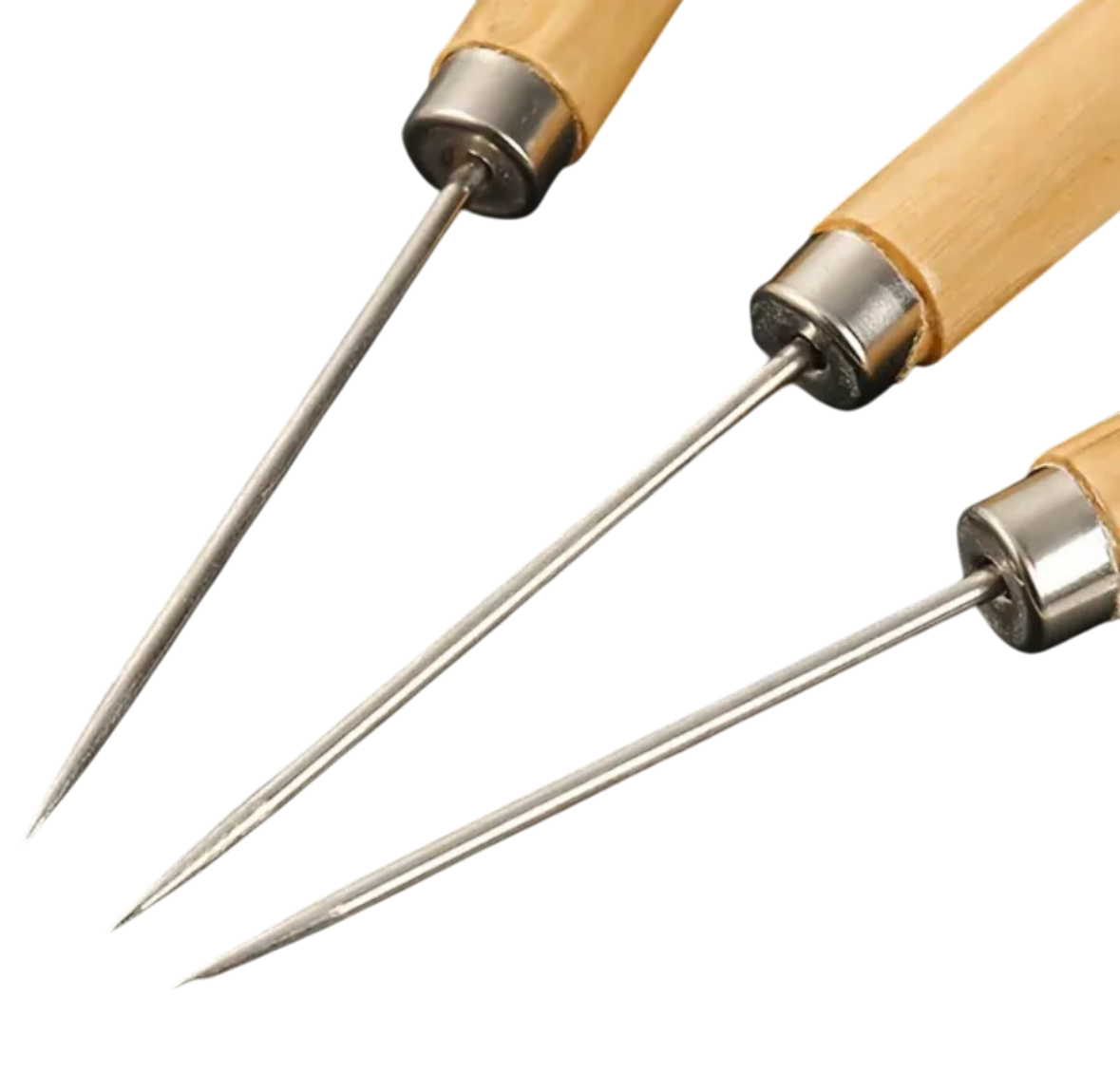 • Medžiagos: metalinis smailus antgalis + medinė rankena