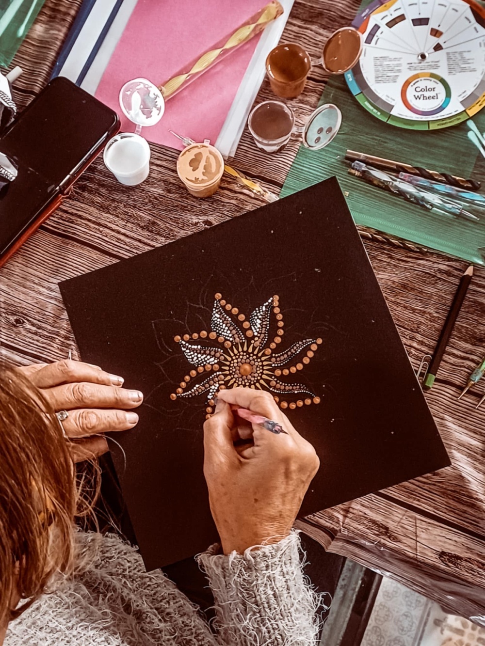 Taškavimo mokymai – tai daugiau nei technika, tai tavo tylos virsmas spalva. Kviečiu į gyvas kūrybines dirbtuves, kur kiekvienas taškas tampa žingsniu į vidinę ramybę.